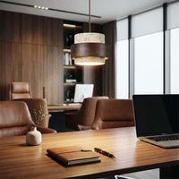 • Finish / color options: Travertine shade paired with a Walnut wood band; available in Walnut, Beige, or Black finishes to suit different décors.