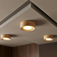 Briston Drum Flush Mount – Ceiling Light Walnut Wood Brass Modern Bedroom Living Room Hallway