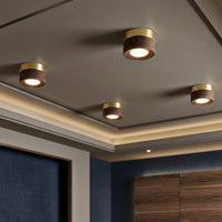 The Briston Drum Flush Mount brings warm, sophisticated lighting to any space with its rich walnut wood shade and brushed brass hardware. Perfect for bedrooms, living rooms, hallways, and entryways where ceiling clearance is limited. This modern flush mount ceiling light delivers ambient illumination while adding natural texture and mid-century elegance to your home decor. The compact drum design mounts close to the ceiling, making it ideal for low-ceiling spaces that need stylish, functional lighting.