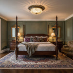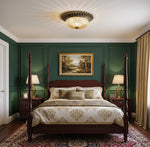 The Carved Glass Flush Mount Ceiling Light brings a touch of timeless refinement to any interior. Its intricate brass frame and cut-glass diffuser create a dazzling interplay of light and shadow, evoking the grandeur of classic European design. Ideal for hallways, dining rooms, or bedrooms, it delivers elegant illumination with a luxurious antique character.