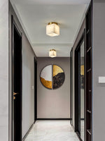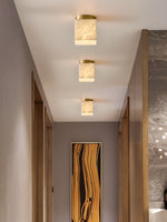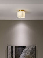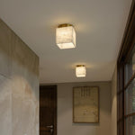 The Marble Glass Flush Mount Ceiling Light blends refined materials with modern geometry for a calm, elegant aesthetic. Its marble-textured glass cube emits soft, even light, anchored by a brushed brass base that sits seamlessly against the ceiling. Perfect for hallways, bedrooms, or entryways, it delivers subtle sophistication and functional illumination in compact spaces.