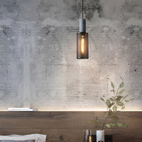 Straton Pendant Light – Industrial Black Smoked Glass Cylinder Hanging Ceiling Kitchen Island Dining Room