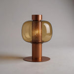 Materials: Copper-Finished Metal Body, Glass Lampshade