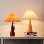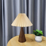 Walnut Cone Pleated Shade Table Lamp – Modern Warm Ambient Light