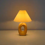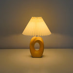 The Wood Ring Pleated Shade Table Lamp combines organic texture with sculptural form for a cozy, refined look. Its curved open-ring base is crafted from natural wood, paired with a pleated shade that diffuses light softly across the room. Perfect for bedside tables or reading corners, it adds warmth and visual interest to any contemporary interior.