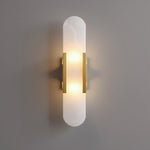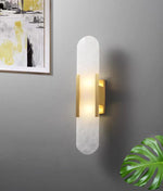 The Modern Marble Wall Sconce combines natural stone elegance with contemporary brass accents for a sophisticated lighting solution. Its elongated cylindrical design features a luxurious marble base paired with frosted glass diffusers and warm gold brass brackets, creating ambient upward and downward illumination. Perfect for hallways, bathrooms, bedrooms, or living spaces, this fixture adds a touch of refined luxury to modern, glam, and transitional interiors.