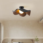 Lotus Leaf Flush Ceiling Light – Curved Wood LED Fixture